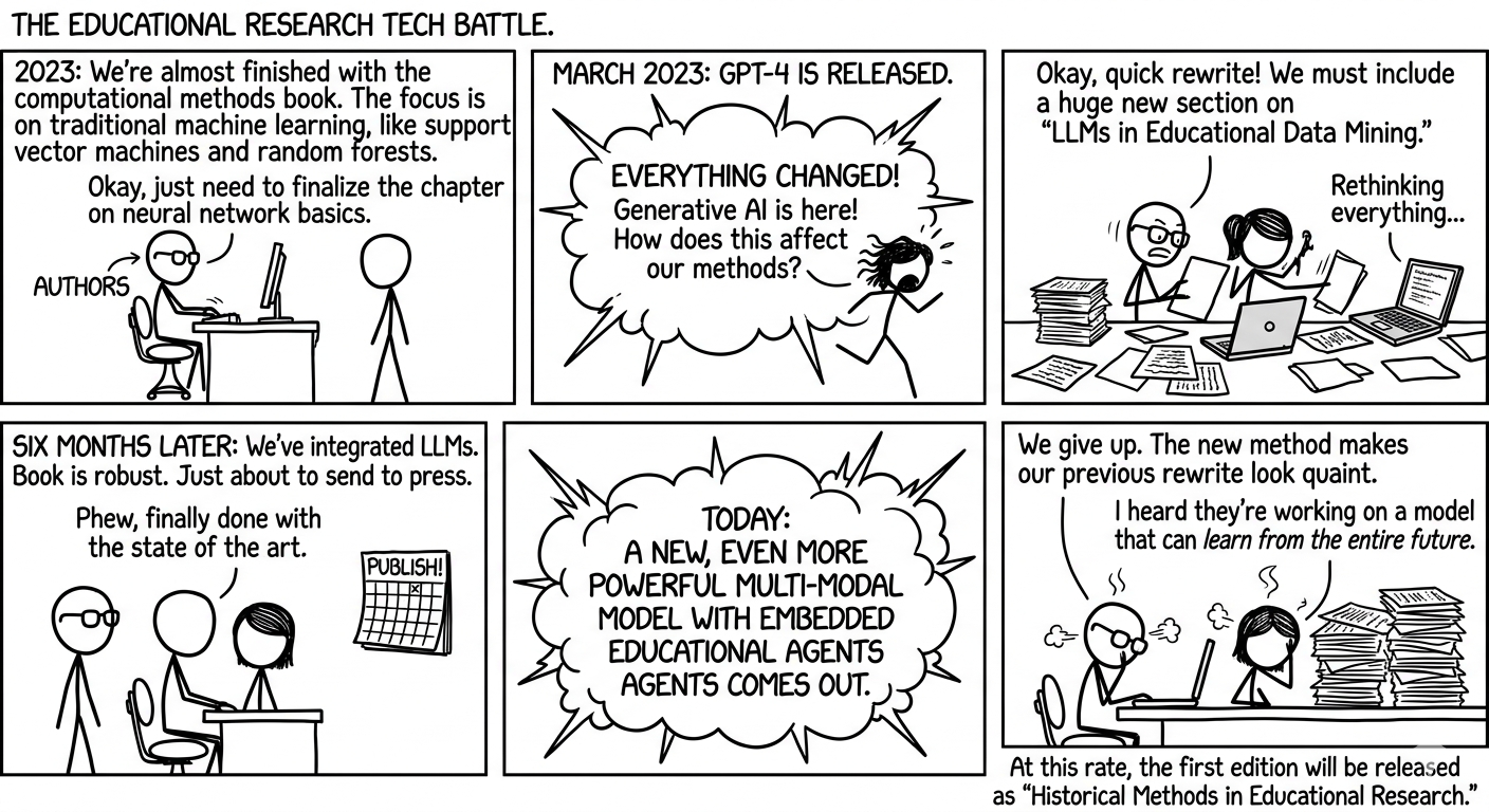 We did not write this book in a quiet methodological era. We started with a strong computational methods plan, thought we were almost done, and then watched the AI landscape change faster than our chapter drafts. More than once.