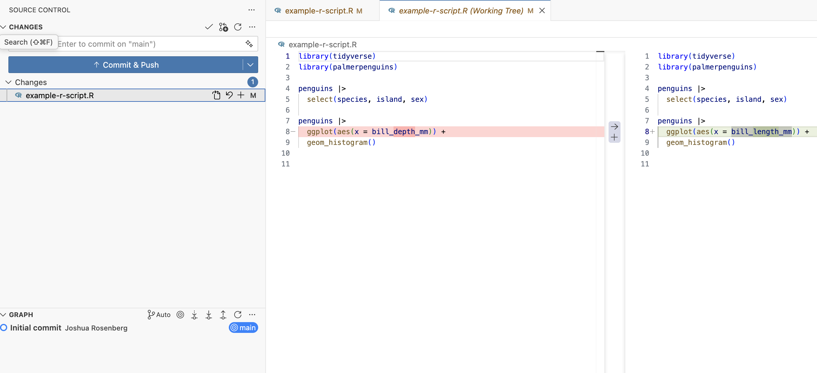 - In Positron: Git integration works through the Source Control panel (often on the left sidebar)