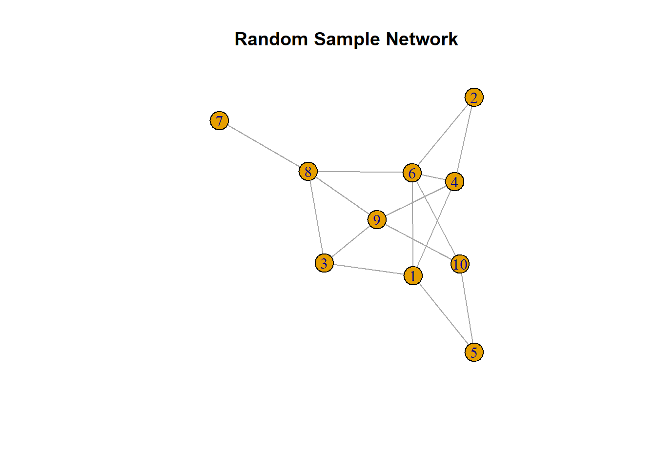 igraphpackage can also generate sample networks for practice:library(igraph) g_sample <- sample_gnp(n = 10, p = 0.3) plot(g_sample, main = "Random Sample Network")