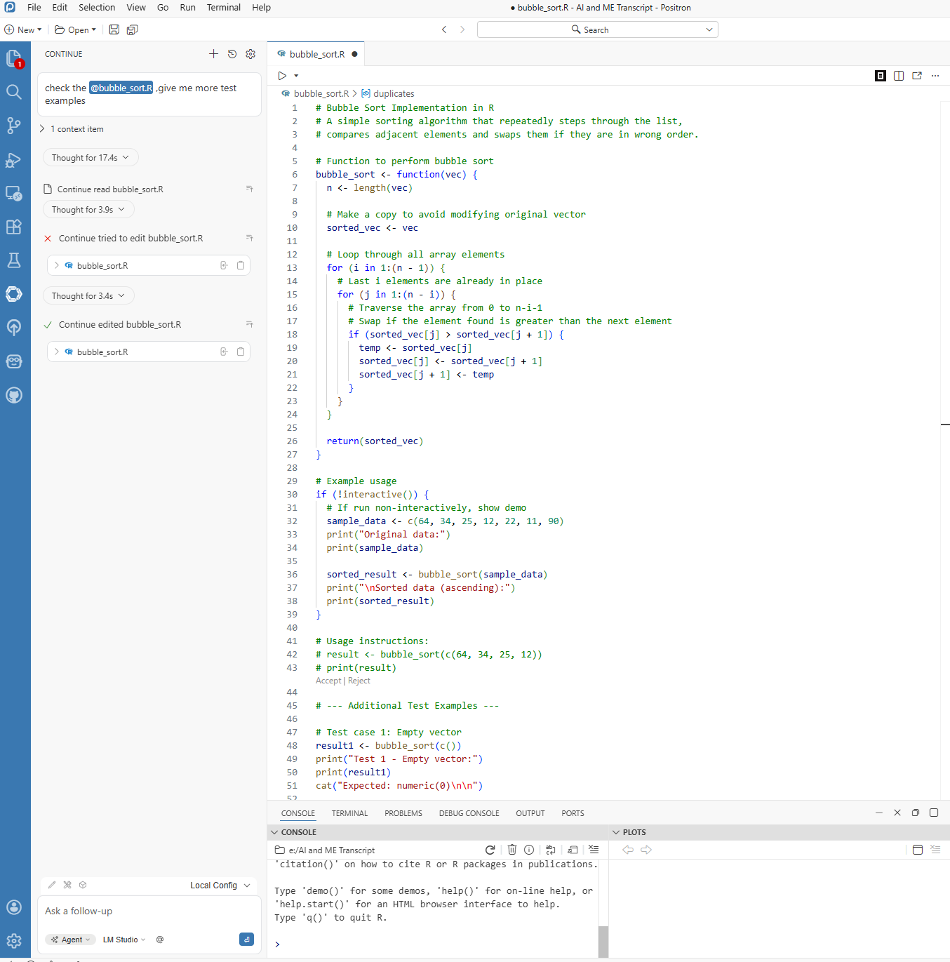 A gentle reminder: Positron Assistant is a tool to work with, not a replacement for your expertise as a researcher. It’s great at generating code, but you’re the expert on your data and research questions. Always review what it generates—treat it as a first draft that needs your expert polish.